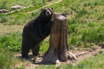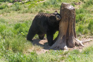 Mit Wildlife hat das überhaupt nichts mehr zu tun. Aber ich würde es auch nicht als Zoo bezeichnen. Die Bären haben hier schon deutlich mehr Freiraum als in einem herkömmlichen Tierpark. Und es ist natürlich total interessant, die Blackies aus nächster Nähe zu beobachten — zum Beispiel wie sie sich an den herumliegenden Baumstämmen scharren.