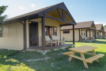Gegen 16:00 Uhr checken wir in der Cedar Pass Lodge ein. Auf den ersten Blick eher unscheinbar, entpuppt sich die Lodge als ein echtes Schmuckstück. Die rustikalen Cabins sind ziemlich neu und echt genial. Jede Cabin hat zwei Verandas mit tollem Ausblick — eine für den Sonnenaufgang und eine für den Sonnenuntergang. Uns gefällt es hier richtig super.