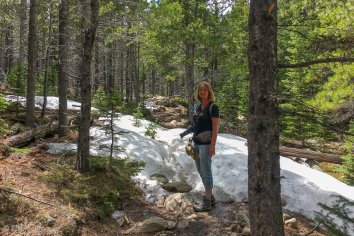 Nach 2.5 Stunden Fahrt erreichen wir den Circle Park Trailhead im Bighorn National Forest, wo wir uns für heute den Sherd Lake Loop Trail herausgesucht haben. Wir sind etwas erstaunt, als wir bei unserer Ankunft noch vereinzelte Schneereste ausmachen — wir hatten irgendwie gar nicht auf dem Schirm, dass wir uns hier in 2500 Meter Höhe befinden.