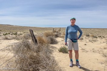 Dann folgen wir immer dem aufgezeichneten GPX-Track, was teilweise etwas mühsam ist: der Weg zieht sich, führt stellenweise durch tiefen Sand und wenn wir nicht sicher wüssten, dass am Ende des Weges ein absolutes Highlight auf uns wartet, dann wäre die Motivation durch diese eher unspektakuläre Einöde zu laufen, wahrscheinlich recht gering.