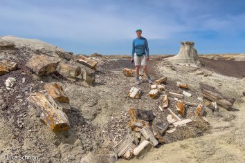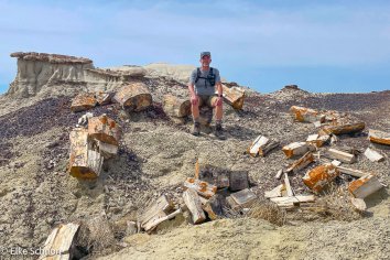 Irgendwann wird die Landschaft aber langsam etwas interessanter und wir entdecken neben diversen Hoodoos auch viel versteinertes Holz in allerlei Farben und Formen:
