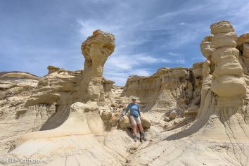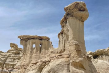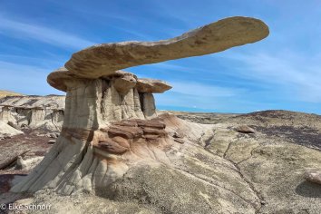 Das Sahnehäubchen am Schluss unserer Rundtour ist die sogenannte Alien City mit ihren riesigen Pilzen, die mit langen Stilen aus den Boden ragen und dem imposanten Alien Throne — einem löchrigen Hoodoo mit futuristischem Charakter.