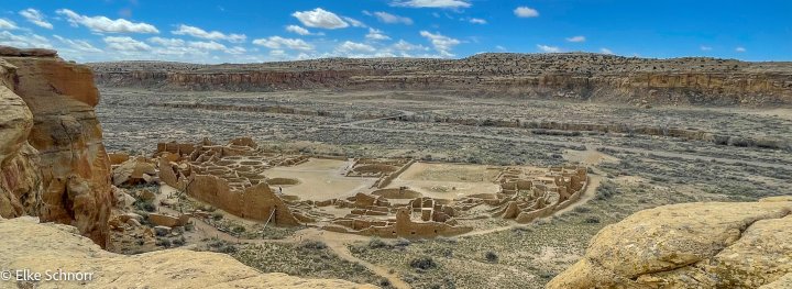 Nach 90 Minuten Fahrt kommen wir gegen 9:45 Uhr im Park an und holen uns zuerst mal eine Karte und ein Back Country Permit im Visitor Center. Hier lassen wir uns auch gleich noch über mögliche Aktivitäten beraten. Wir wollen auf jeden Fall eine Führung im Pueblo Bonito mitmachen — eine der größten und am besten erhaltenen Pueblo-Siedlungen in Chaco Canyon — und sind außer dem Besichtigen der Ruinen auch noch auf etwas Bewegung aus.