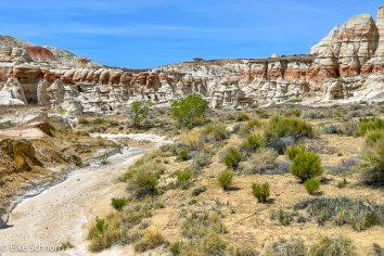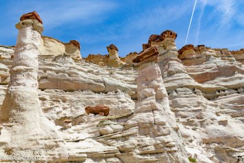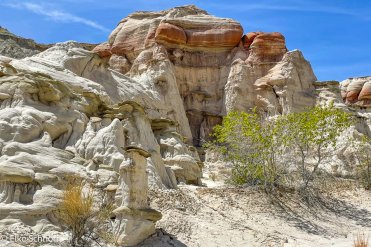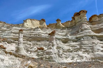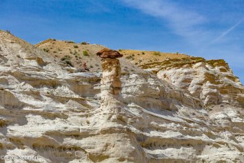 Nach knapp zwei Stunden entdecken wir dann den ersten Hoodoo und hoffen, dass es ab jetzt etwas spannender wird. Und das wird es in der Tat. Es dauert gar nicht lange, bis wir in eine Wunderwelt aus weißen Hoodoos eintauchen und gar nicht wissen, wo wir die Kamera zuerst hinrichten sollen.