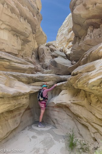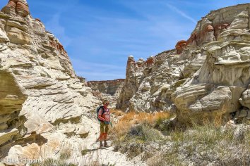 Heute haben wir eine Wanderung im Sidestep Canyon geplant und steuern zielstrebig den Parkplatz an, wo auch der Trail zu den Wahweap Hoodoos startet. Die White Ghosts lassen wir heute allerdings rechts liegen, als wir gegen 9:15 Uhr losmarschieren — wir sind gespannt darauf, etwas neues zu entdecken.