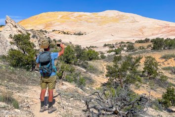 Als erster Zwischenstopp steht an der Cottonwood Canyon Road der Yellow Rock auf dem Plan. Diesen haben wir zwar vor acht Jahren schon einmal besucht, aber es ist einfach eine so tolle Location und da sie heute direkt an der Strecke liegt, bietet sich eine Wiederholung regelrecht an.