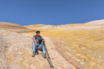 Und der Weg hinauf auf die höchste Stelle des Yellow Rock lohnt auf jeden Fall. Uns erwartet ein 360°-Panorama, was seinesgleichen sucht und in Verbindung mit dem heute fast stahlblauen Himmel einen absolut irren Kontrast bildet.