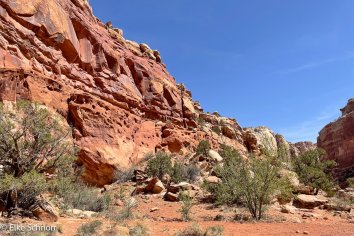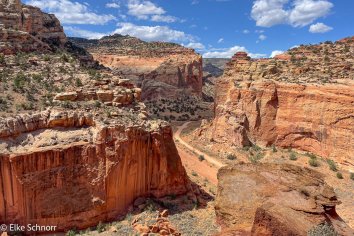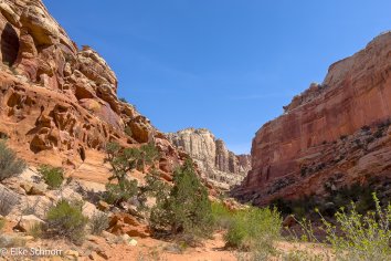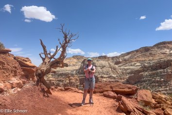 Gegen 10:15 Uhr kommen wir im Capitol Reef Nationalpark an. Hier legen wir fast immer bei der Durchfahrt eine längere Pause ein, um eine der vielen tollen Wanderungen zu machen. So auch diesmal. Nachdem wir uns noch eben einen neuen Nationalparkpass zugelegt haben, fahren wir zunächst für eine Runde den Scenic Drive entlang.