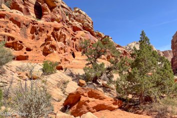 Da der Abzweig zum Cassidy Arch Trail etwas versteckt ist, machen wir am Anfang prompt den Fehler, den anderen Leuten einfach hinterher zu laufen und verpassen ihn. Zum Glück merken wir es aber recht bald und drehen wieder um.