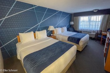 Das Hotel ist ganz in Ordnung, wir bekommen ein Standardzimmer mit zwei großen Betten und alles ist halbwegs modern und sauber.
