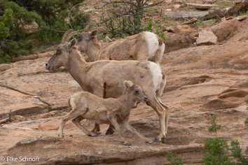Gleich zu Beginn des Scenic Drives werden wir von einer größeren Gruppe Mountain Sheeps begrüßt – einschließlich niedlicher Babys, die gerade am trinken sind. Ein entzückender Anblick!
