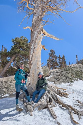 Wir laufen eine schöne Runde über den Nymph Lake, den Dream Lake und den Emerald Lake. Es liegt noch richtig viel Schnee — wir sind hier immerhin auf ca. 3000 Meter — und wir sind echt froh über unsere „Schneeketten“ für die Wanderschuhe.