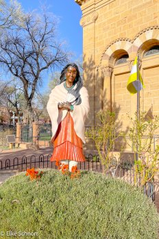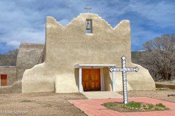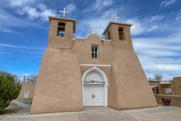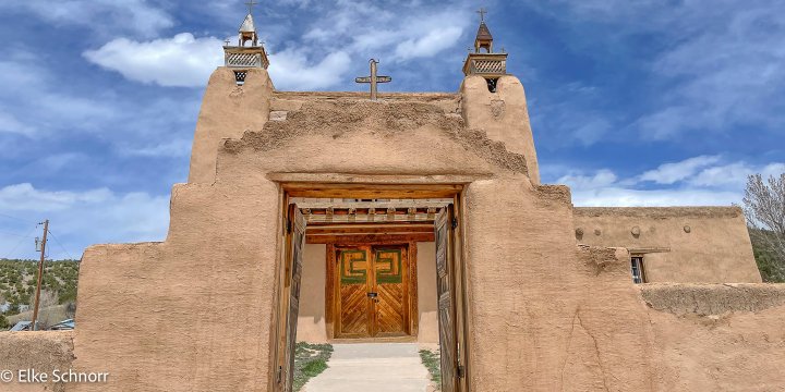 Für die Weiterfahrt nach Santa Fe begeben wir uns von hier auf die High Road to Taos. Diese führt durch viele kleine schnuckelige Örtchen und bietet tolle Ausblicke auf die umgebende Landschaft. Und wenn man die hübschen Kirchen im Adobe Stil mag, kommt man hier voll auf seine Kosten: