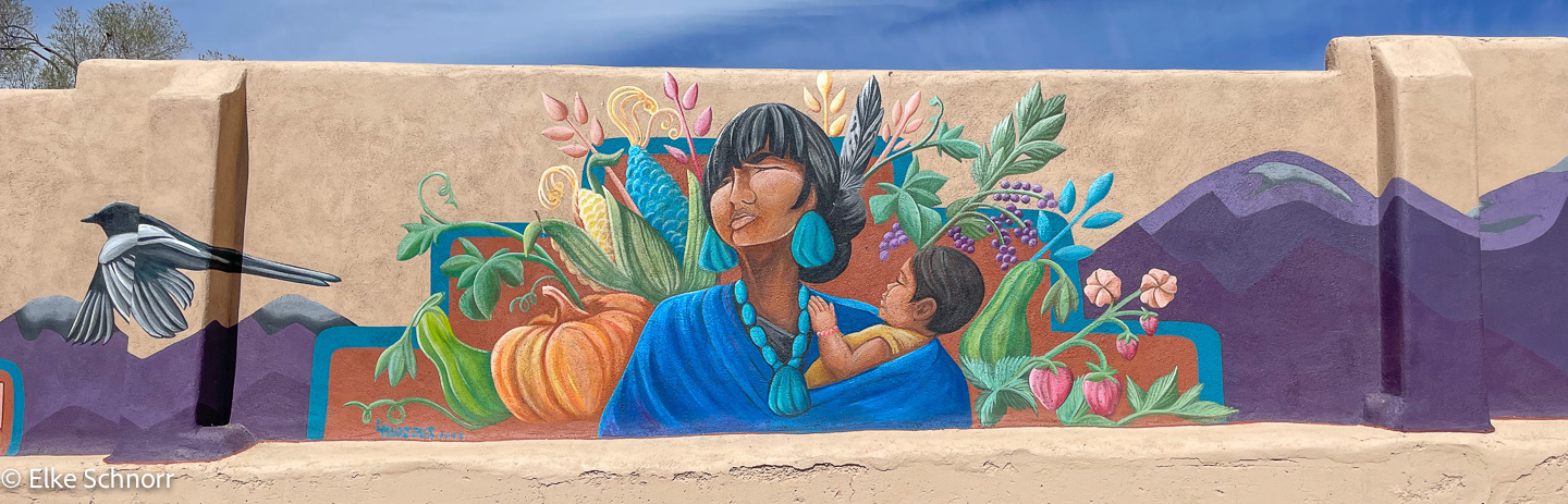 Wir legen eine Pause ein und bummeln eine Stunde durch das äußerst hübsche Städtchen. Hier hatte es uns schon bei unserem Besuch in 2012 richtg gut gefallen und wir erfreuen uns einmal mehr an der tollen Adobe-Architektur und den vielen hübschen Eingangstüren und Wandmalereien.