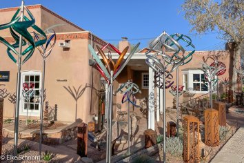 Die Temperaturen steigen im Land of Enchantment dann tatsächlich langsam, aber der Wind nimmt nicht wirklich nicht ab. Als wir gegen 11:00 Uhr in Taos ankommen, herrschen an die 50 km/h Windgeschwindigkeit — wir fühlen uns fast ein bisschen wie in Patagonien