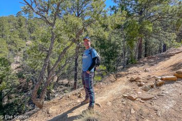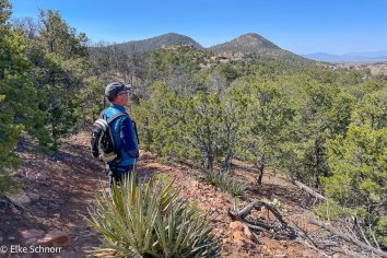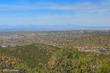 So fahren wir schlussendlich wieder in die Dale Ball Area — diesmal in den südlichen Teil. Hier laufen wir eine nette 5-Kilometer-Runde in einer ähnlicher Landschaft wie gestern und genießen die schneefreien Ausblicke auf Santa Fe.