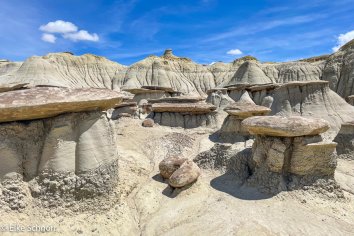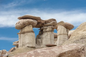 Wir parken unser Auto, schnüren die Wanderstiefel und marschieren los zu einer Entdeckungstour durch dieses Gebiet in völliger Abgeschiedenheit. Am Anfang sind wir noch etwas skeptisch, denn von unserem Parkplatz aus lässt sich nicht ansatzweise erahnen, welches Hoodoo-Eldorado uns hier erwartet: