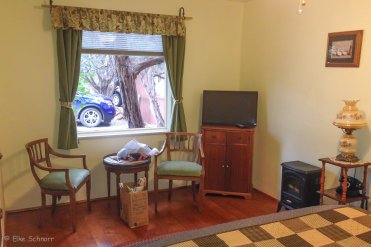 Wir hatten das Zimmer Country Garden - ausgestattet mit Kingbett, einem großen Badezimmer und Terrasse. Das Zimmer an sich war zwar nicht besonders groß, aber sehr liebevoll eingerichtet und top sauber und es gab außerdem einen großen Aufenthaltsraum mit Kamin, Massagestuhl und gemütlichen Sofas.