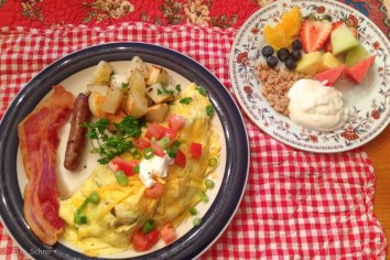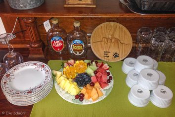 Zum Frühstück bereitete Myles jeden Morgen einen anderen warmen Hauptgang. Es gab u.a. Omelett und Breakfast Burritos - alles sehr lecker. Außerdem gibt es immer frisches Obst, Joghurt und Müsli sowie selbst gebackene Brötchen und Küchlein und selbstgemachtes Eis.