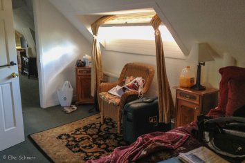 Wir waren im Ivy-Room untergebracht - bestehend aus einem Schlafzimmer mit Doppelbett und einen Wohnzimmer mit Schlafsofa direkt unter dem Dach. Trotz schräger Decken und recht kleinem Bad hatten wir insgesamt genügend Platz.
