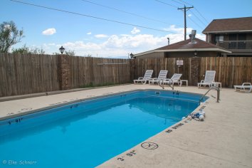 Das Comfort Inn & Suites ist ein zweistöckiges, schon etwas älteres Motel mit Außenkorridoren in ziemlich zentraler Lage. Parken kann man direkt vor den Zimmern. Das Gebäude ist schon älter, aber alles ist in einem guten Zustand und sauber.