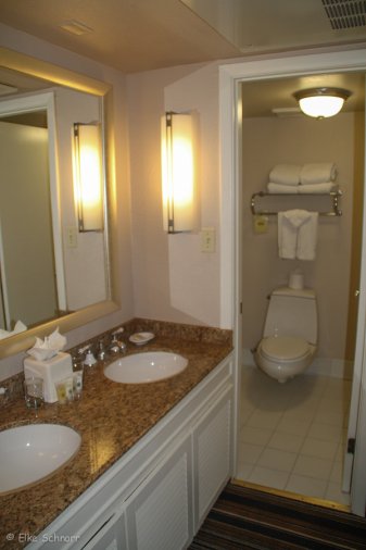Wir hatten ein Zimmer mit 2 Doppelbetten, was sehr geräumig, komfortabel und sauber war. Das Zimmer hatte einen Kühlschrank und eine Kaffeemaschine. Das Bad war ebenfalls sehr sauber und geräumig mit 2 Waschbecken.