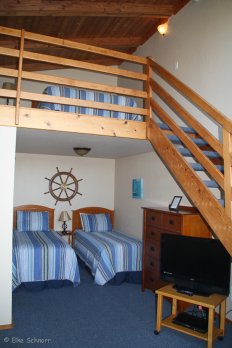 Wir hatten die Suite 1 mit einem Doppelbett im Loft und 2 Einzelbetten im Main Floor. Vom Zimmer aus hatte man durch die riesigen Dachfenster einen herrlichen Blick auf den Hafen und die Boote.