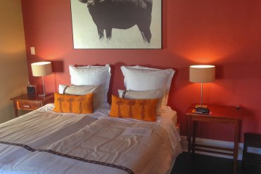 Wir hatten das Zimmer Nr. 2 mit einem Doppelbett und einem extra Balkon mit tollem Blick auf den Devils Peak. Es war nicht sonderlich groß, aber nett eingerichtet und alles war sauber und gepflegt. Ein Kühlschrank und ein Safe waren ebenfalls im Zimmer vorhanden.