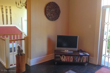 Es gibt noch einen größeren Aufenthaltsraum mit Fernseher und vielen Büchern und Zeitschriften. Hier haben wir abends oft mit den anderen Gästen zusammen gesessen und geplauscht.