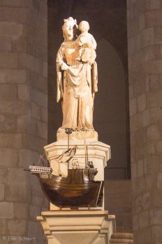 Die Kirche, die der Schutzheiligen der Seeleute gewidmet ist, gilt als schönstes Beispiel katalanischer Gotik und bei den Einheimischen genießt Santa Maria del Mar als „Kathedrale des Volkes“ eine höhere Verehrung als die Kathedrale selbst. Und es ist immerhin die erste Kirche, in der wir ein Schiff gesehen haben