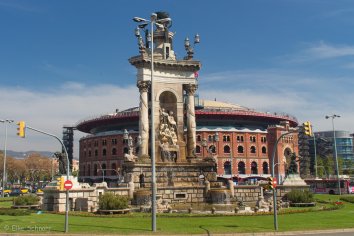 Zuerst geht es mit der Metro zur Plaça d’Espanya. Hier steht La Monumental — die ehemalige Stierkampfarena.