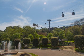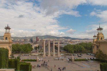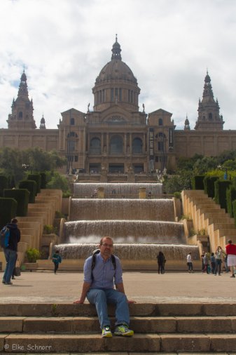 Da die Sonne es heute wieder besser mit uns meint, beschließen wir, noch einmal auf den Montjuïc hinauf zu fahren, und laufen vorbei am Palau National, wo der Magische Brunnen sich heute ausschweigt und weiter bis zur Talstation des Telefèric de Montjuïc.