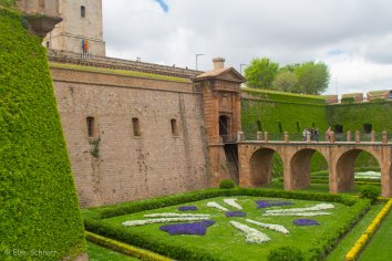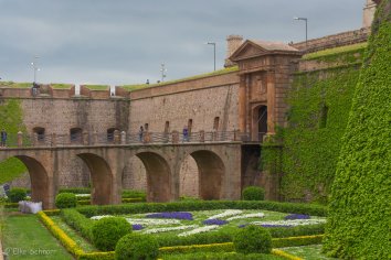 Mit der modernen Gondel fahren wir bis zum Gipfel, wo sich die alte Festungsanlage befindet. Von dieser aus wurde Barcelona im spanischen Erbfolgekrieg von den kastilischen Besatzern in Schach gehalten. Später, während der Franco-Diktatur, war die Festung ein gefürchtetes Gefängnis für politische Gefangene.