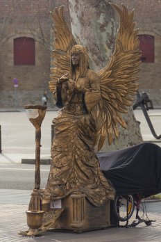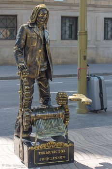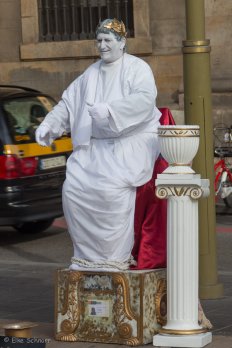 Wir wälzen uns mitsamt dem Menschenstrom meereinwärts — vorbei an Andenkenläden, Blumen- und Vogelverkäufern, Taschendieben, Straßenmusikern und Selbstdarstellern, wobei wir nur letztere fotografiert haben