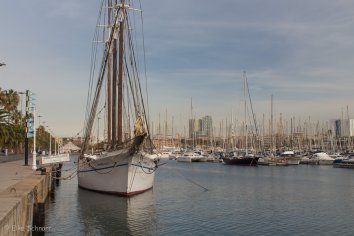 Am unteren Ende der Flaniermeile erreichen wir dann das Kolumbusdenkmal. Die bronzene Kolumbusstatue auf einer 50 Meter hohen Eisensäule erinnert an die Audienz, die das damalige Königspaar dem berühmten Entdecker nach seiner Heimkehr in Barcelona gewährte. Kolumbus zeigt mit seinem — immerhin einen halben Meter langen! — Finger allerdings nicht wirklich in Richtung Neue Welt.