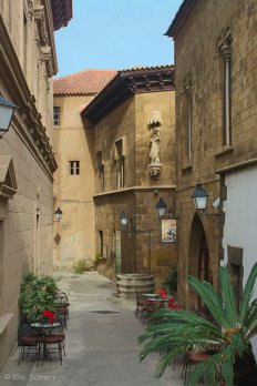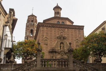 Wir steigen wieder in einen „Roten Bus“ und setzen unsere Tour fort. Nächster Halt wäre das Poble Espanyol — ein Freilichtmuseum am Fuße des Montjuïc, das 1929 aus Anlass der Weltausstellung erbaut wurde. Da wir dieses aber bereits im Januar angeschaut haben, als wir wegen eines Gerichtstermins für einen Tag in Barcelona waren, überspringen wir diese Station auf der heutigen Rundtour — die Bilder möchte ich Euch jedoch nicht vorenthalten: