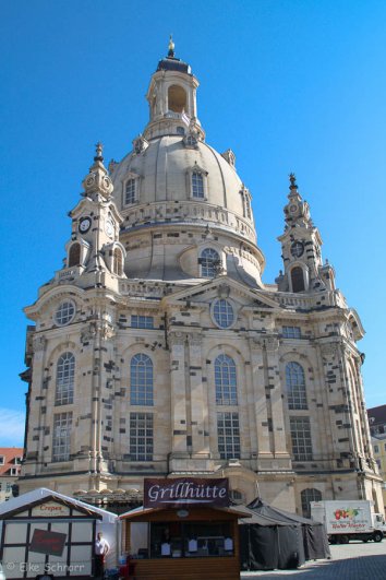 Wir kommen vorbei an der Frauenkirche, verschieben einen Besuch aber vorerst auf später, da wir Tickets für das Grüne Gewölbe mit einem festen Zeitraster haben und diese verfallen, wenn wir nicht pünktlich da sind. Ein paar erste Bilder werden aber trotzdem schon mal geknipst: