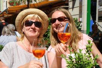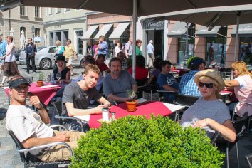 Hier treffen wir uns mit Angela und Gerald, die heute morgen aus Altenburg angekommen sind und nach einer herzlichen Begrüßung suchen wir uns erstmal ein nettes Café, in dem wir eine Weile sitzen und plauschen.