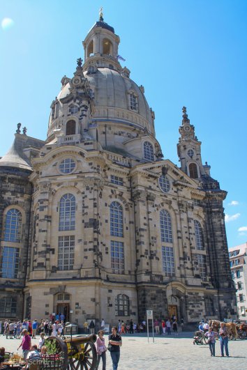 Die imposante Kirche aus Sandstein gilt als eines der Wahrzeichen der Stadt Dresden. Im zweiten Weltkrieg fast vollständig zerstört, wurden die Ruinen zu DDR-Zeiten als Mahnmal belassen. Nach der Wende wurde jedoch mit dem Wiederaufbau begonnen und seit 2005 erstrahlt das Meisterwerk wieder in neuer Pracht.