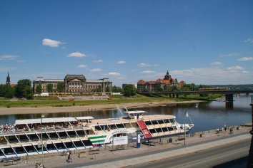 Da der Gottesdienst noch immer andauert, als wir wieder unten sind, schlendern wir für eine Runde über die Brühlsche Terrasse, bewundern die Prachtbauten am anderen Elbufer und besorgen uns schon mal Schiffstickets für die Elbtallinie, mit der wir morgen in die Sächsische Schweiz fahren wollen.