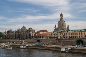 Wir laufen über die Augustusbrücke und spazieren am anderen Elbufer entlang, von wo wir einen schönen Blick auf die Kulisse der Altstadt haben.