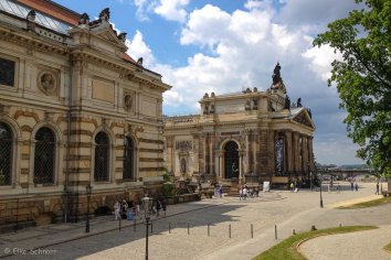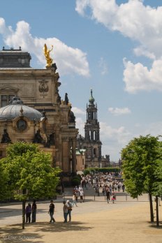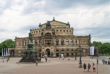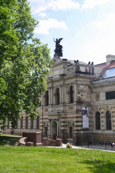Wir wollen heute Nachmittag an einer Führung in der Semperoper teilnehmen und schon mal Tickets dafür besorgen. Leider sind wir jedoch zu spät dran — für heute ist bereits alles ausgebucht und so bleibt uns nur der Anblick von außen, den wir ja von der Radeberger Brauerei-Werbung bereits nur zu gut kennen.