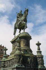 Seine Kleidung als römischer Imperator mit Panzerhemd und Sandalen soll wohl sein damaliges Streben, zum römisch-deutschen Kaiser gewählt zu werden, symbolisieren.