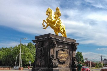 Am Neustädter Markt kommen wir am „Goldenen Reiter“ vorbei — einem der Wahrzeichen der Stadt.