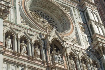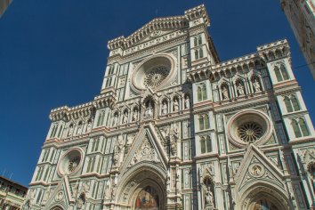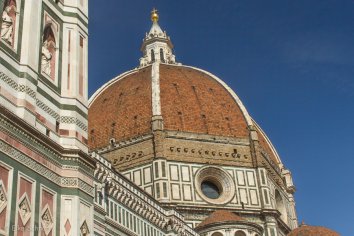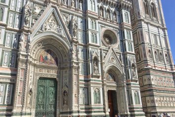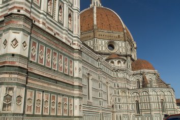 Aber auch so kommen wir natürlich nicht umhin, die gewaltige Domkuppel zu bewundern, die der Architekt Filippo Brunelleschi entworfen hat. Und auch die herrliche Fassade aus grünem und weißem Marmor im neo-gotischen Stil ist mit ihren filigranen Mustern einfach nur beeindruckend.