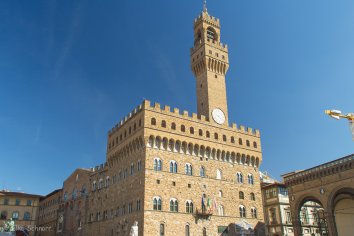 Weiter geht es zum Piazza della Signoria, wo wir uns den Palazzo Vecchio anschauen. Heute das Rathaus von Florenz wurde er Anfang des 14. Jahrhunderts als Palazzo del Popolo gebaut, nachdem die Florentiner beschlossen hatten, dass sie einen neuen Standort für ihre Regierung benötigten — einen Ort, der die wachsende Bedeutung der Stadt widerspiegelte.