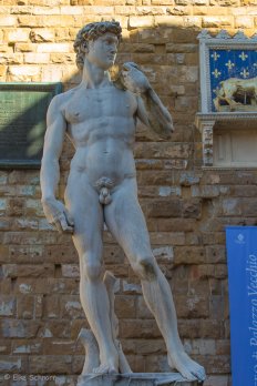 In der Mitte des Platzes steht eine Nachbildung seines berühmtesten Werkes, die David-Statue.