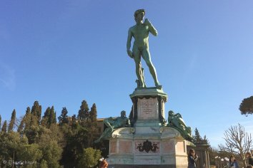 Nach einer halben Stunde und dem Überwinden einiger Höhenmeter erreichen wir den Platz, der dem berühmtesten Renaissance-Künstler der Stadt, Michelangelo Buonarroti, gewidmet ist.