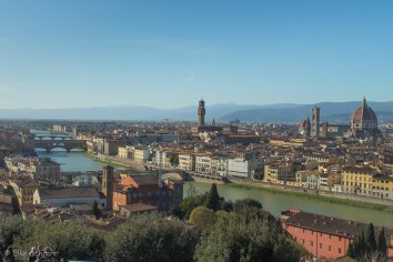 Und auch der Aussichtsplatz hält was er verspricht: wir haben eine herrliche Aussicht über die Stadt Florenz mit den toskanischen Hügeln als malerische Kulisse: