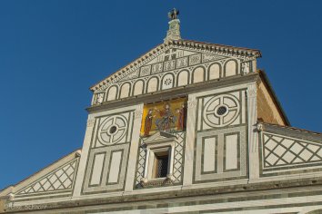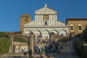 Und wo wir einmal hier sind, wollen wir uns auch noch San Miniato al Monte anschauen — eine historische Kirche aus dem 11. Jahrhundert, die eine der authentischsten römischen Kirchen in der Toskana sein soll.